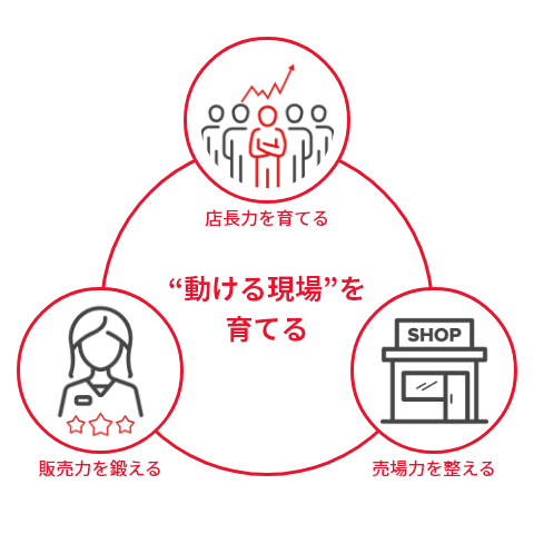 接客、売場、人材育成。