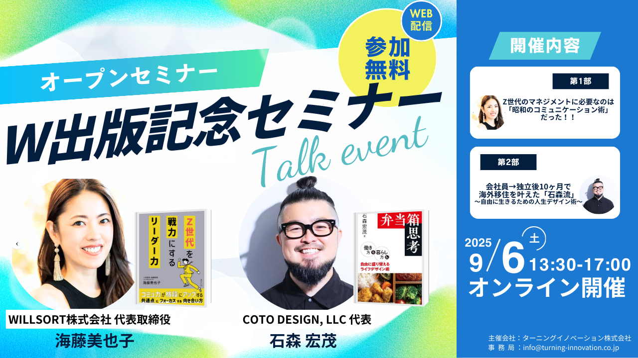2025年9月6日、オンラインにて『W出版記念セミナー』が開催され、弊社代表・海藤美也子が第1部に登…
